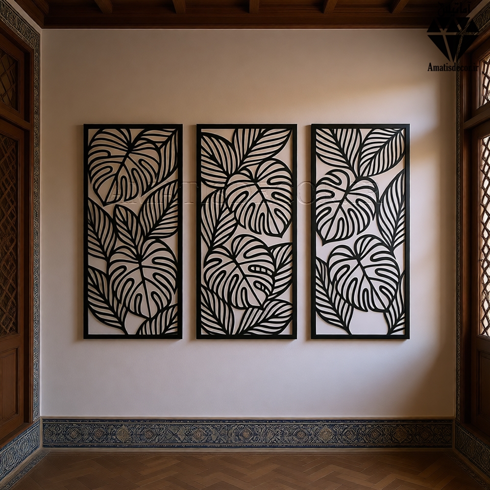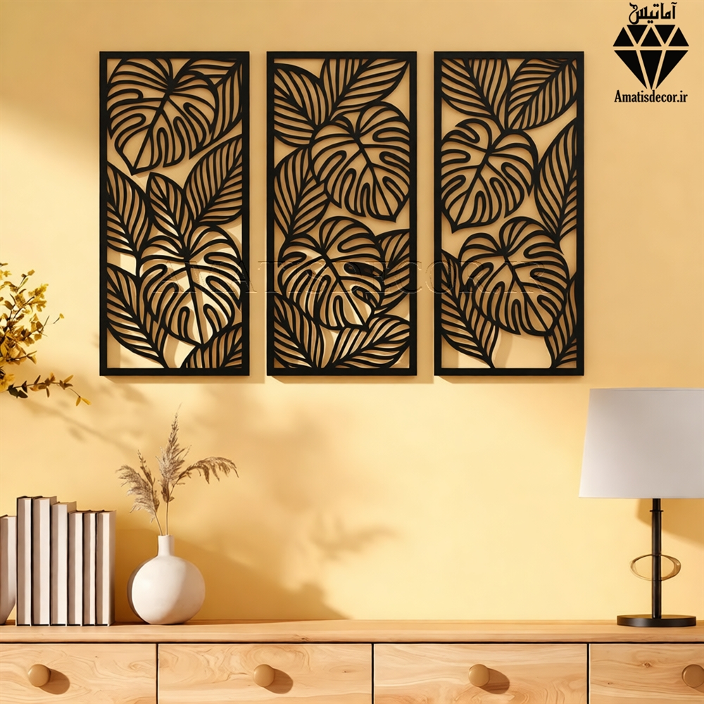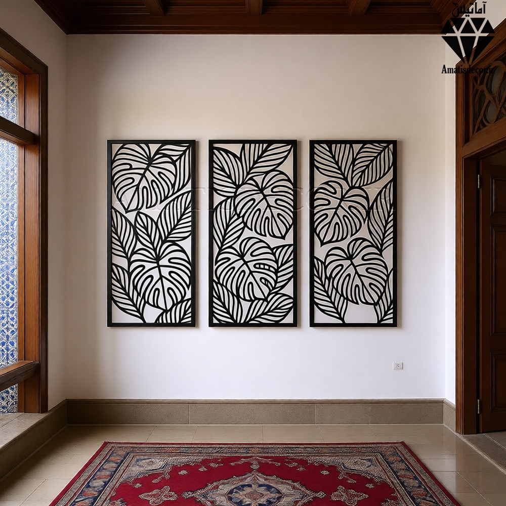 کاربرد تابلو چوبی 3 تکه طرح برگ کد 1007