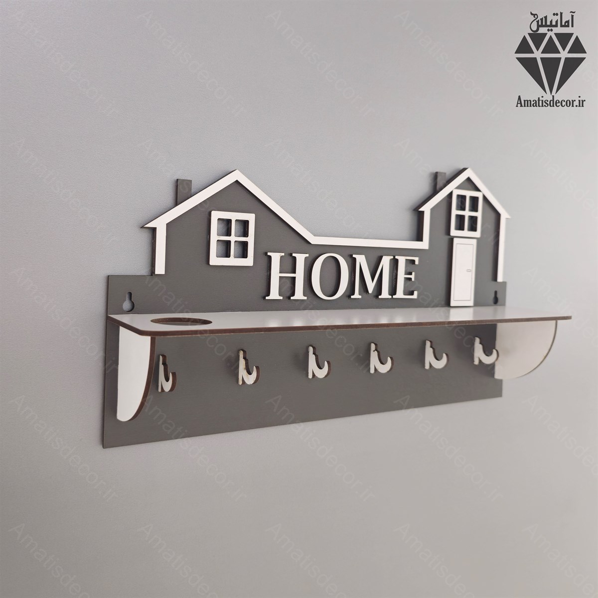 جا کلیدی دیواری طرح هوم 6 قلاب آویز کد 102